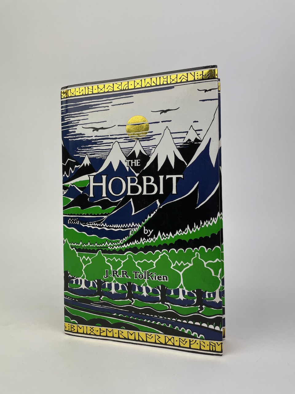 The dustjacket of this The Hobbit stands out from other editions because of the gilded moon and gilded borders with dwarven runes