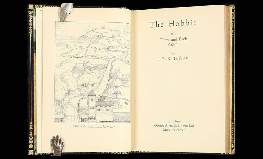This first edition The Hobbit is housed in a velvet-lined book-style drop-back case of full morocco, titled in gilt on spine.